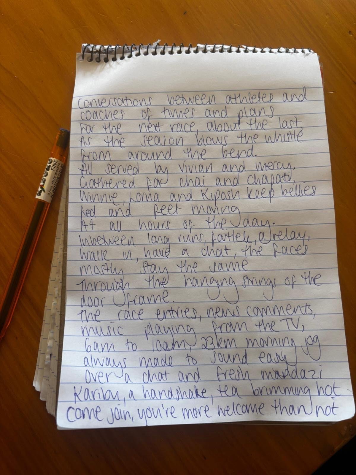 Running is a lifeline here, movement is a lifeline. Seeing this group of runners gathered on a Tuesday morning listening intently to a moving speech by an admired man, I was speechless.